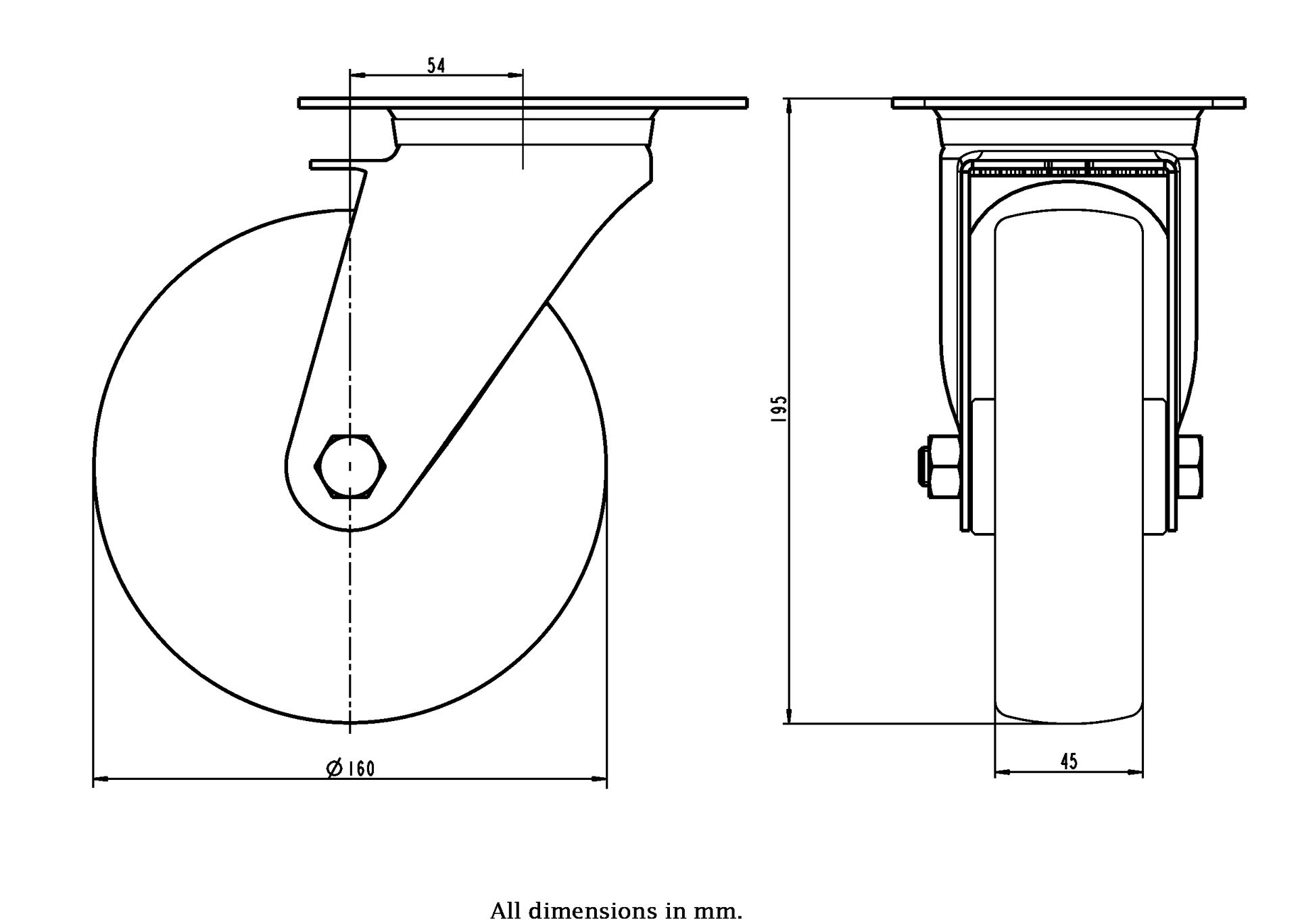 160mm stainless steel swivel castor with red thermoplastic polyurethane on nylon centre wheel