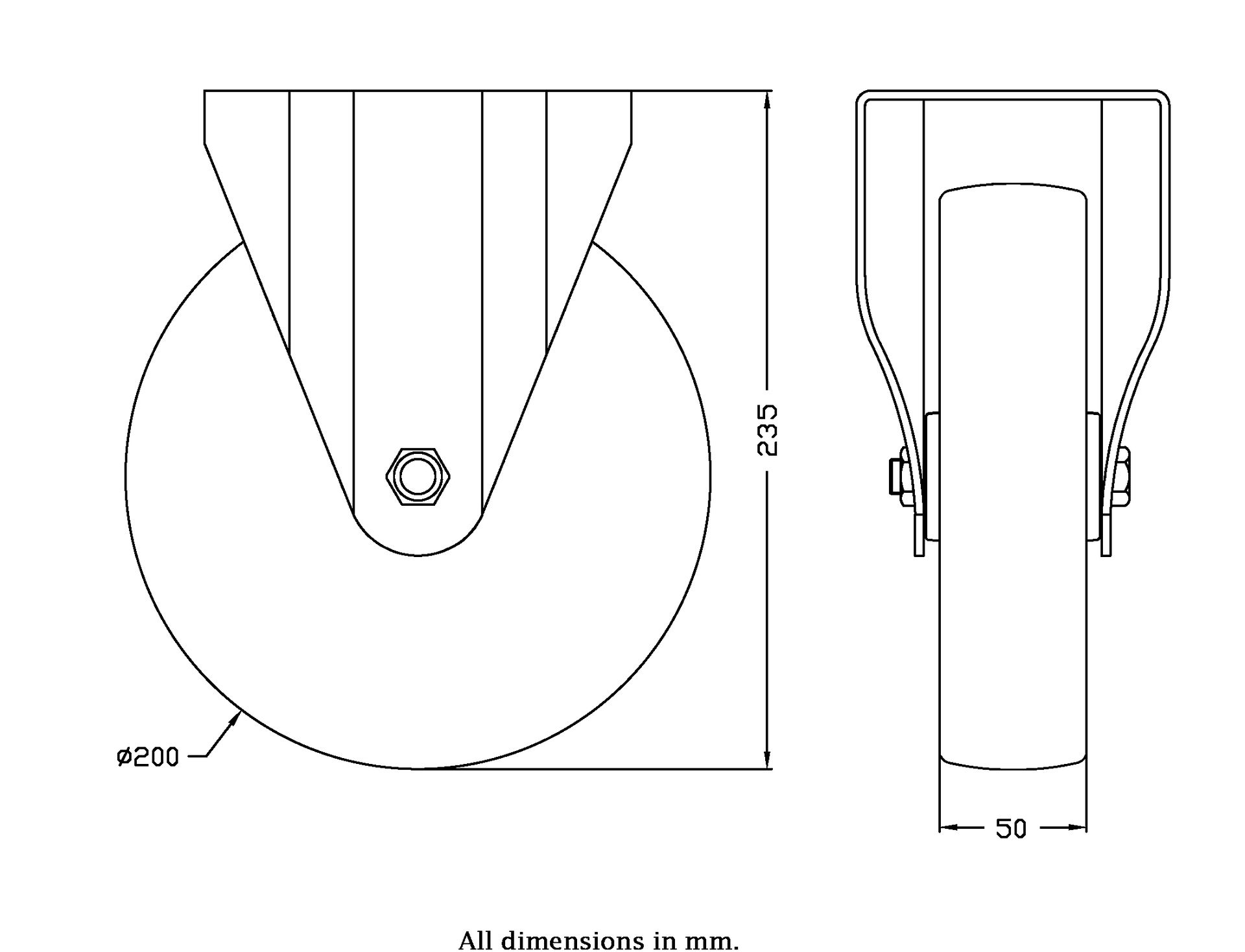 200mm stainless steel fixed castor with red thermoplastic polyurethane on nylon centre wheel
