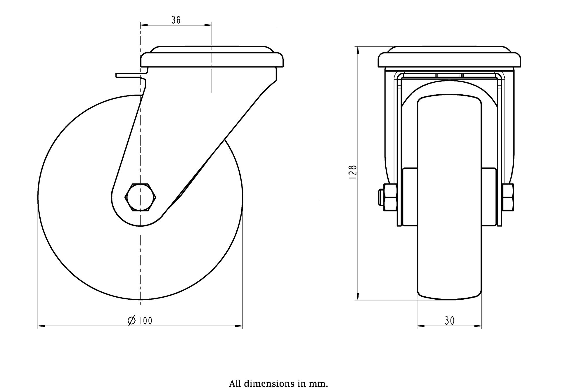 Wheel Diameter: 100mm (4" inches)