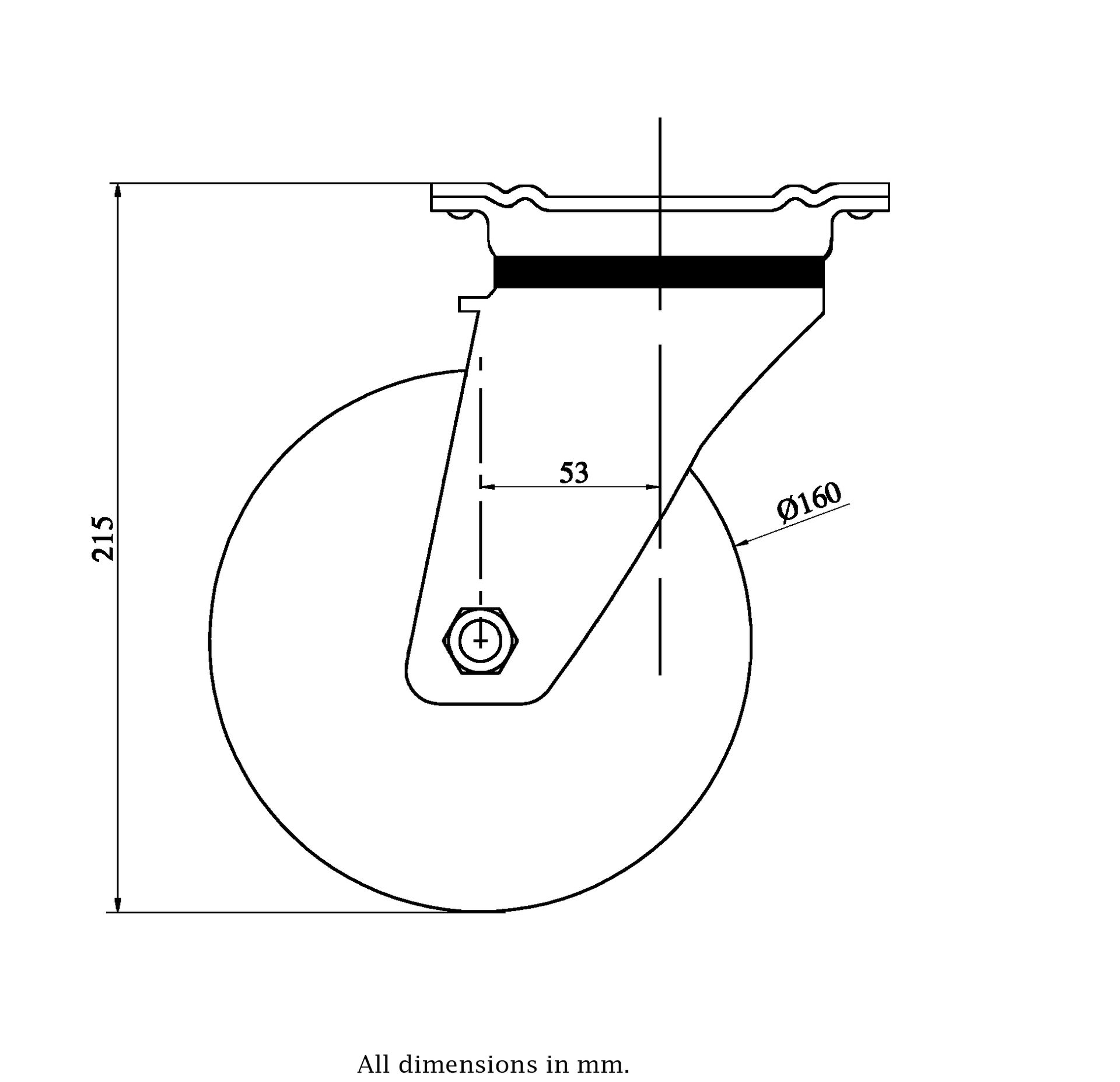 Swivel castor with strong top plate bracket made of zinc plated steel with sealed hardened double row ball race in swivel head, grease nipple and dust protection ring.