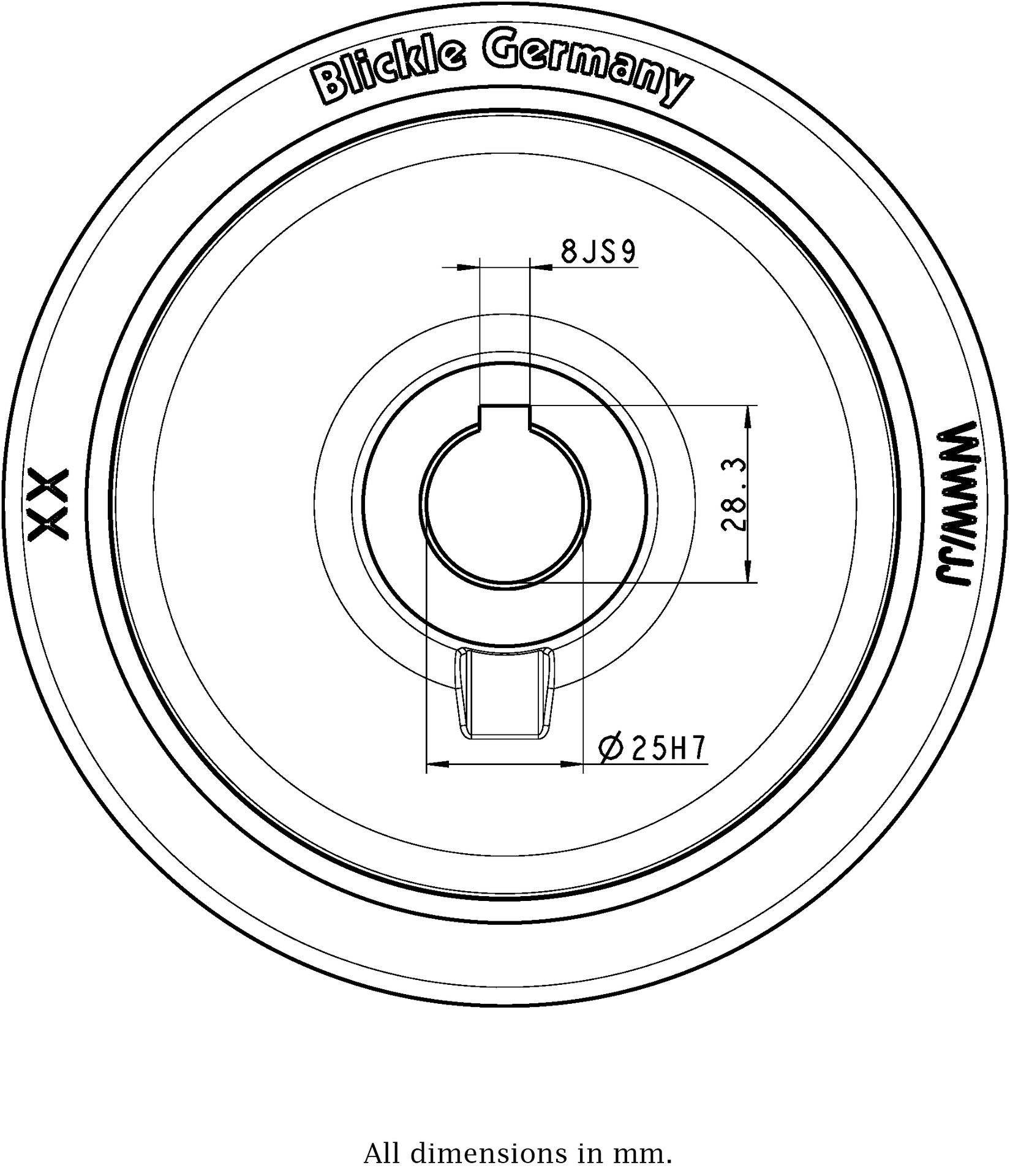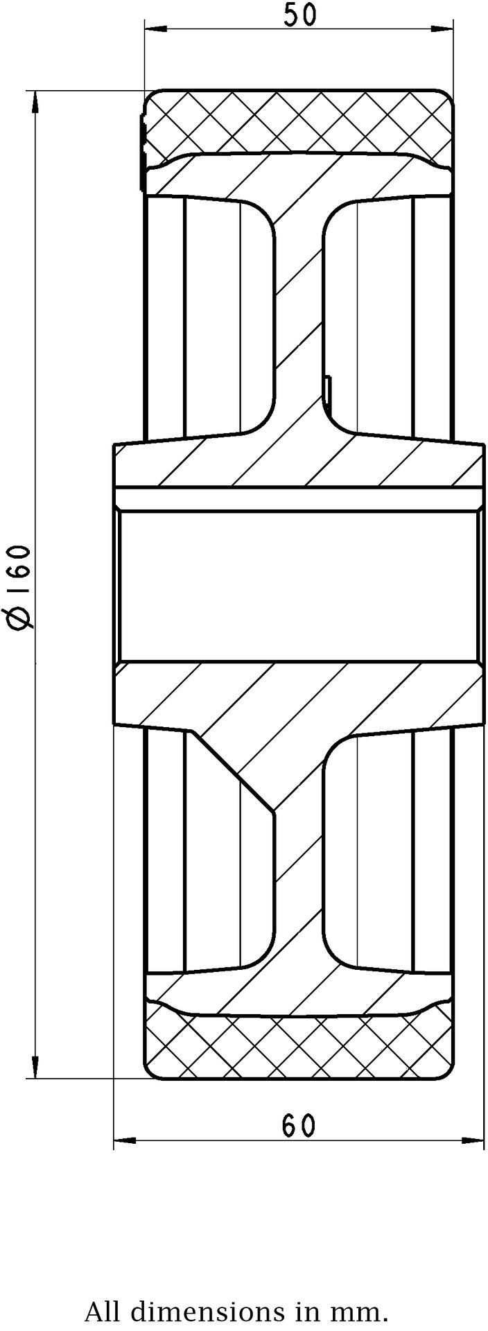 160mm wheel with brown polyurethane on cast iron centre with keyway