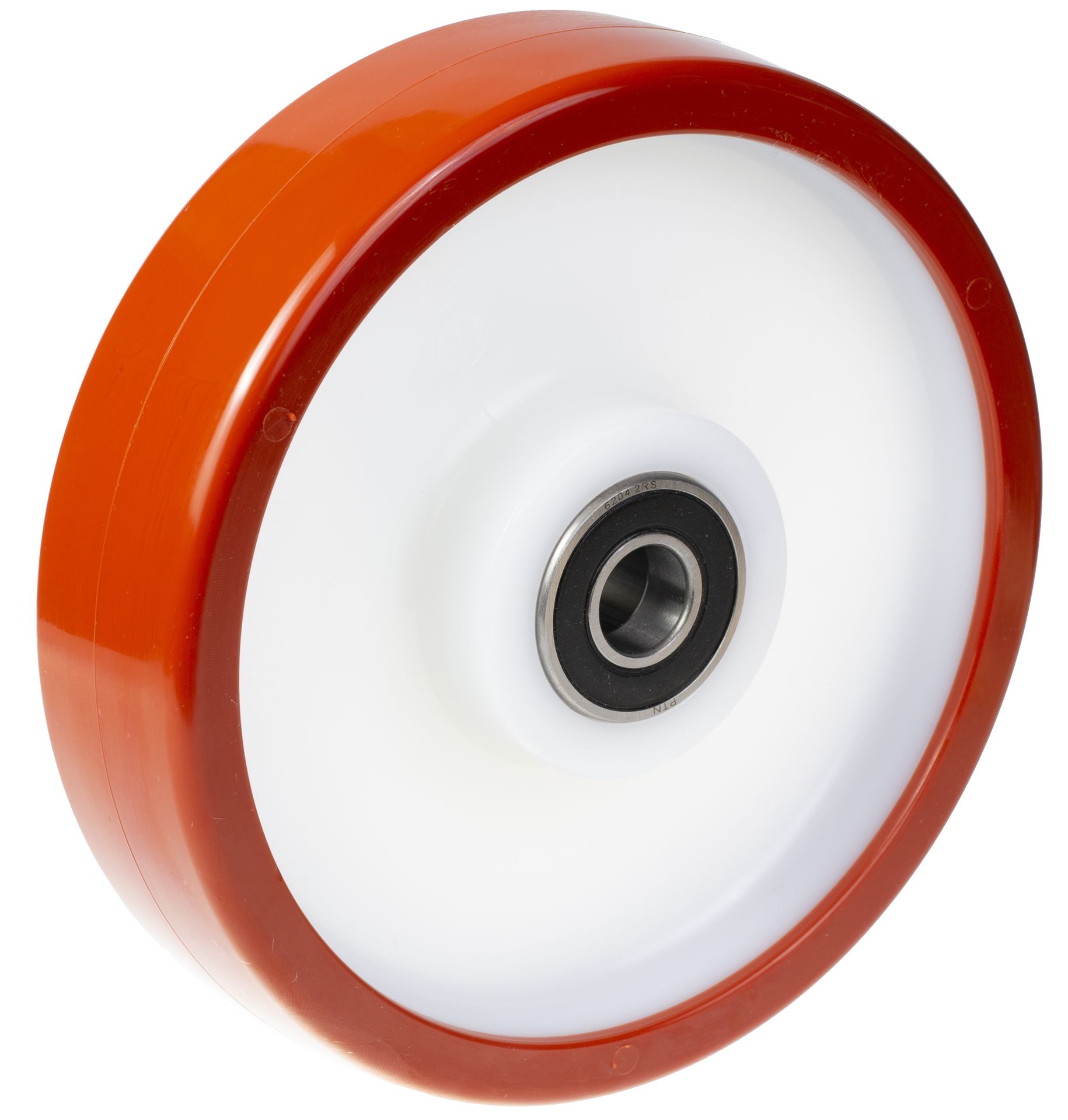 200mm wheel with red thermoplastic polyurethane on nylon centre