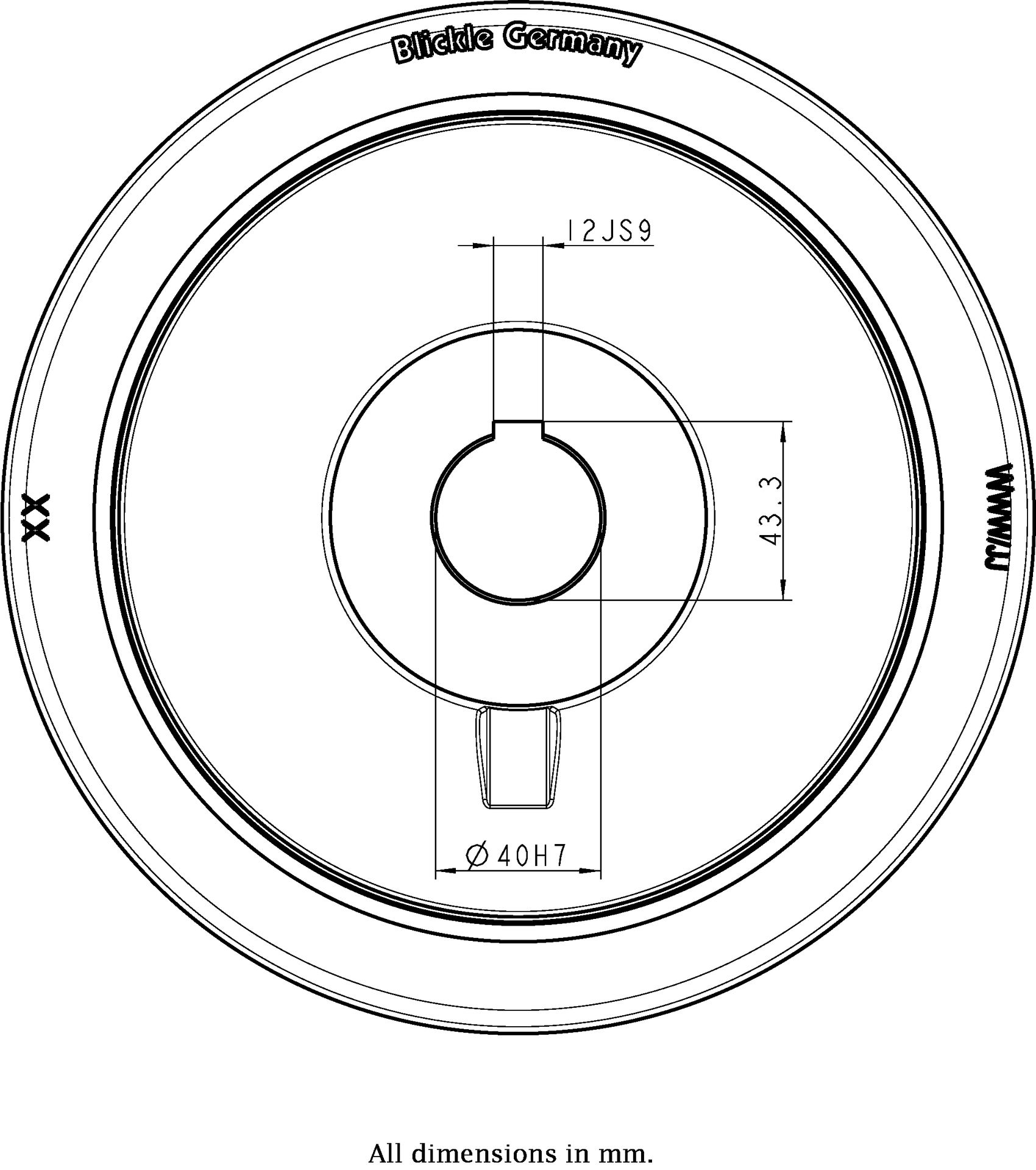 250mm wheel with brown polyurethane on cast iron centre with keyway