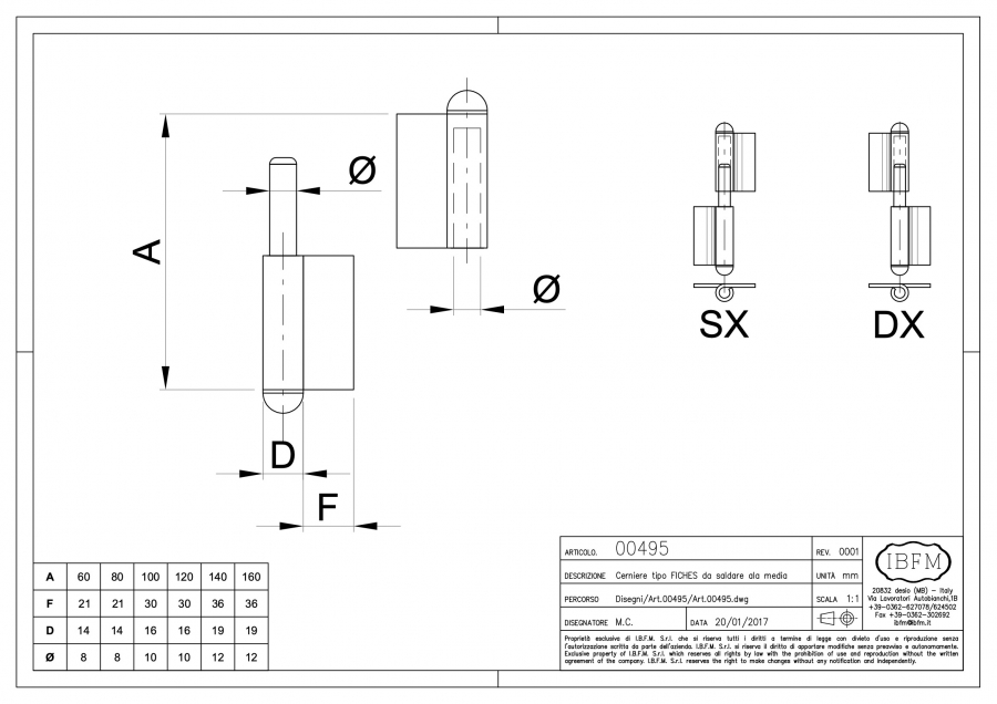 Hinge to Weld with Fixed Pin - Medium Wing Left and Right Hand Natural Steel Finish Flag type hinge.