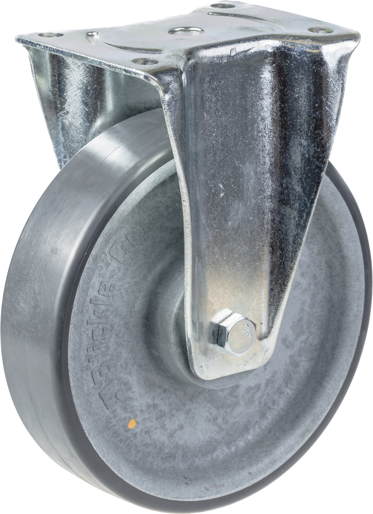 Fixed castor with strong top plate bracket made of zinc plated steel.