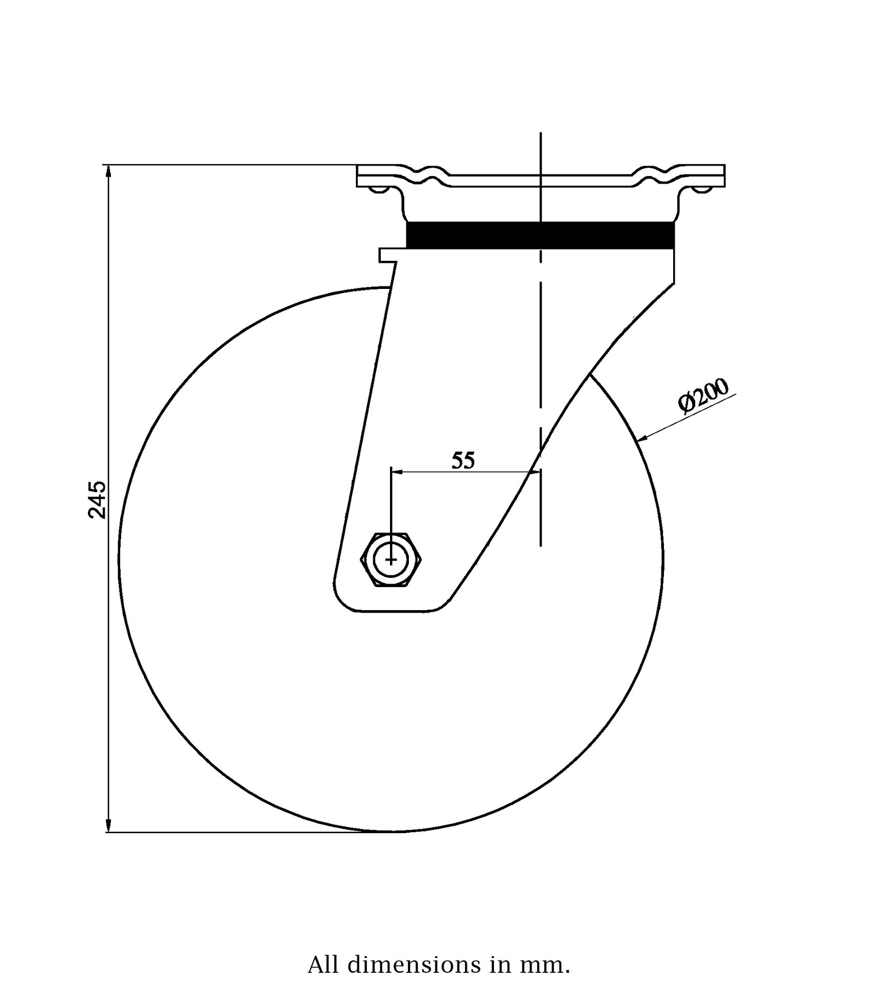 Wheel Diameter: 200mm (8" inches)