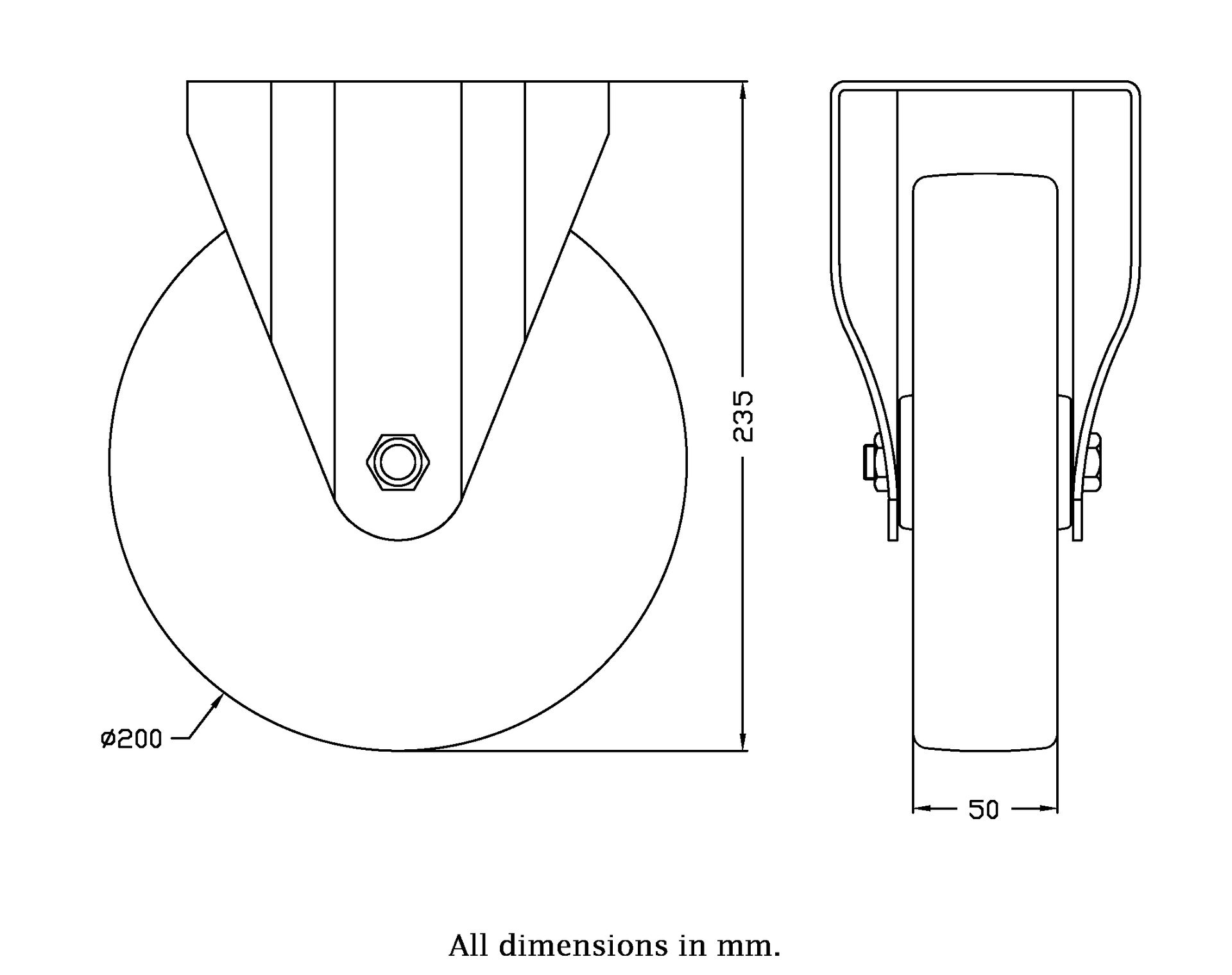 Wheel Diameter: 200mm (8" inches)