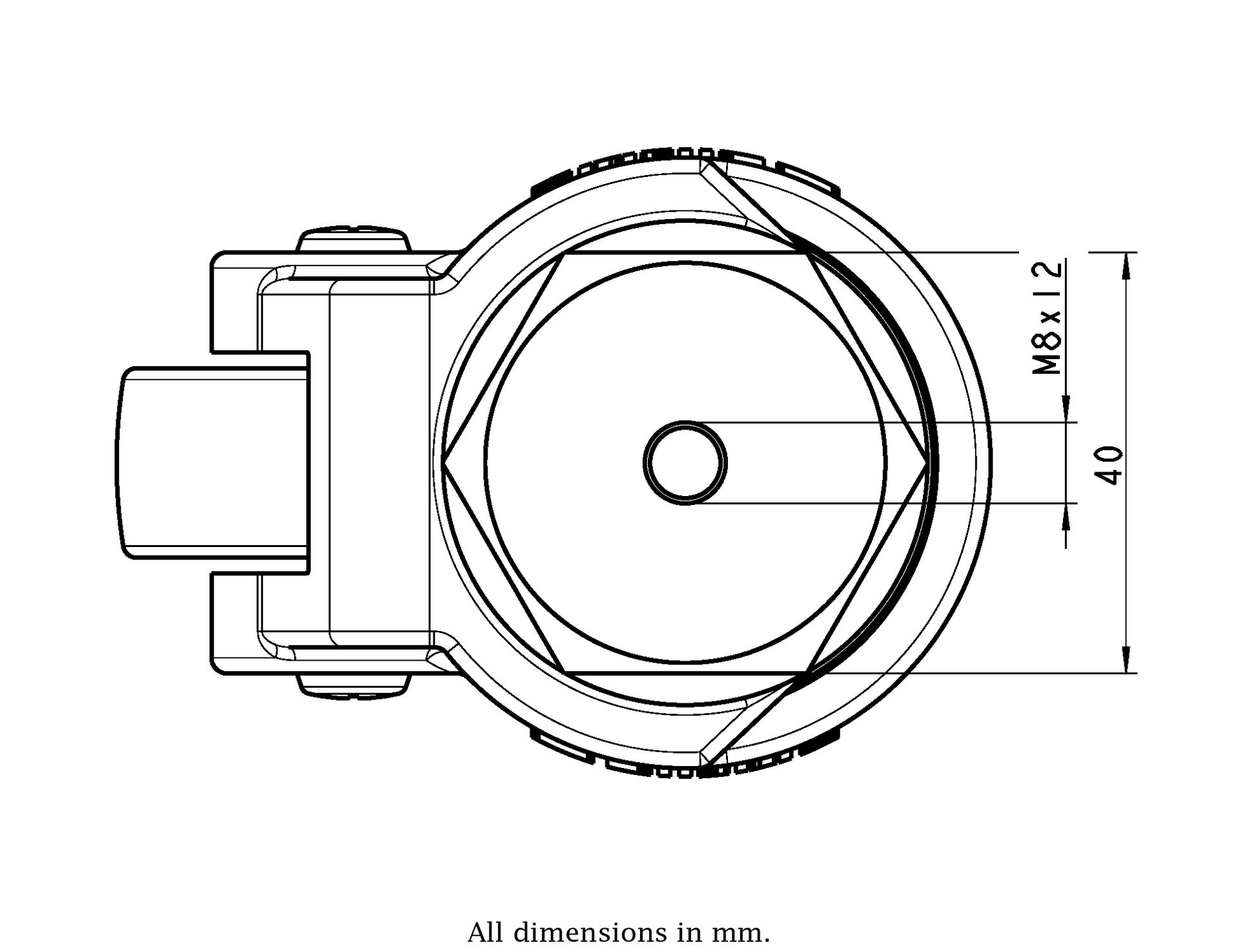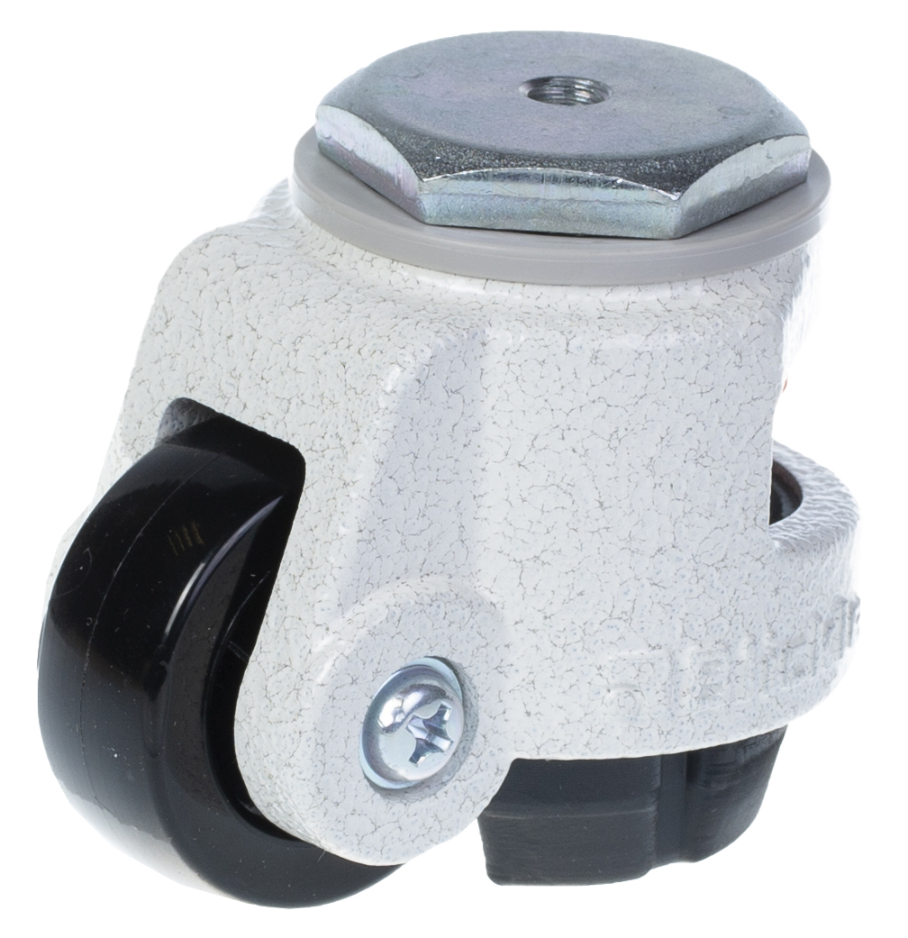 - Levelling swivel castor with zinc plated hexagon steel plate, female thread (M8x12mm) in the single bolt hole.