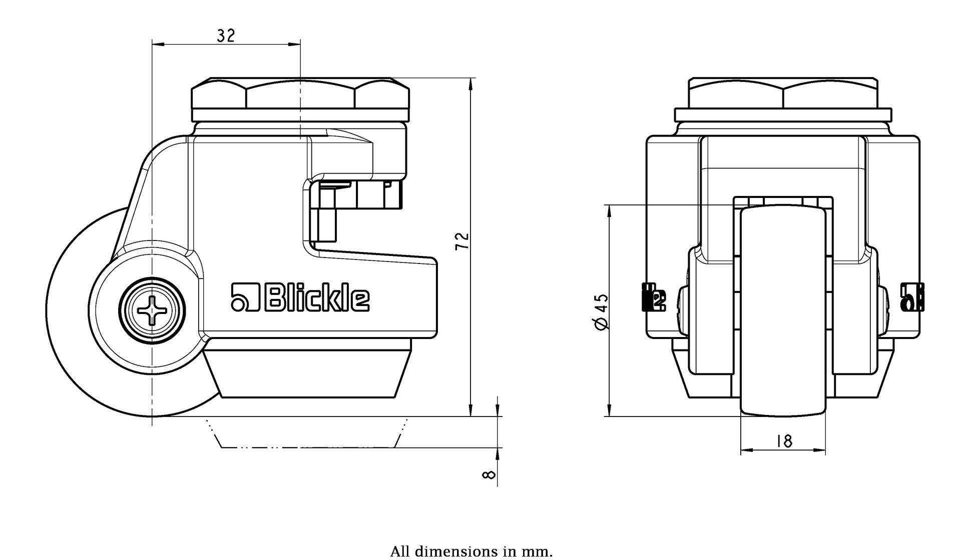- Height adjustment with flat spanner or integrated adjustment wheel.