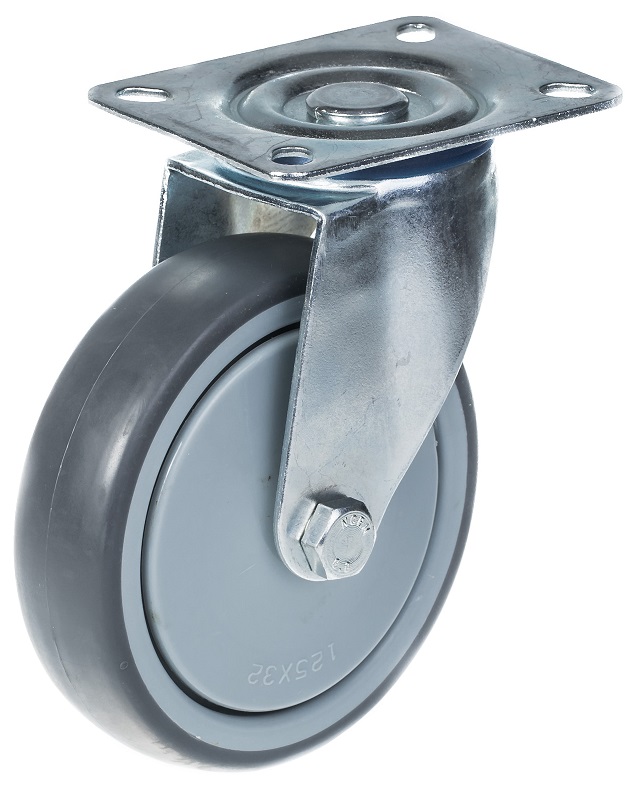 125mm swivel castor with grey thermoplastic rubber on polypropylene centre wheel