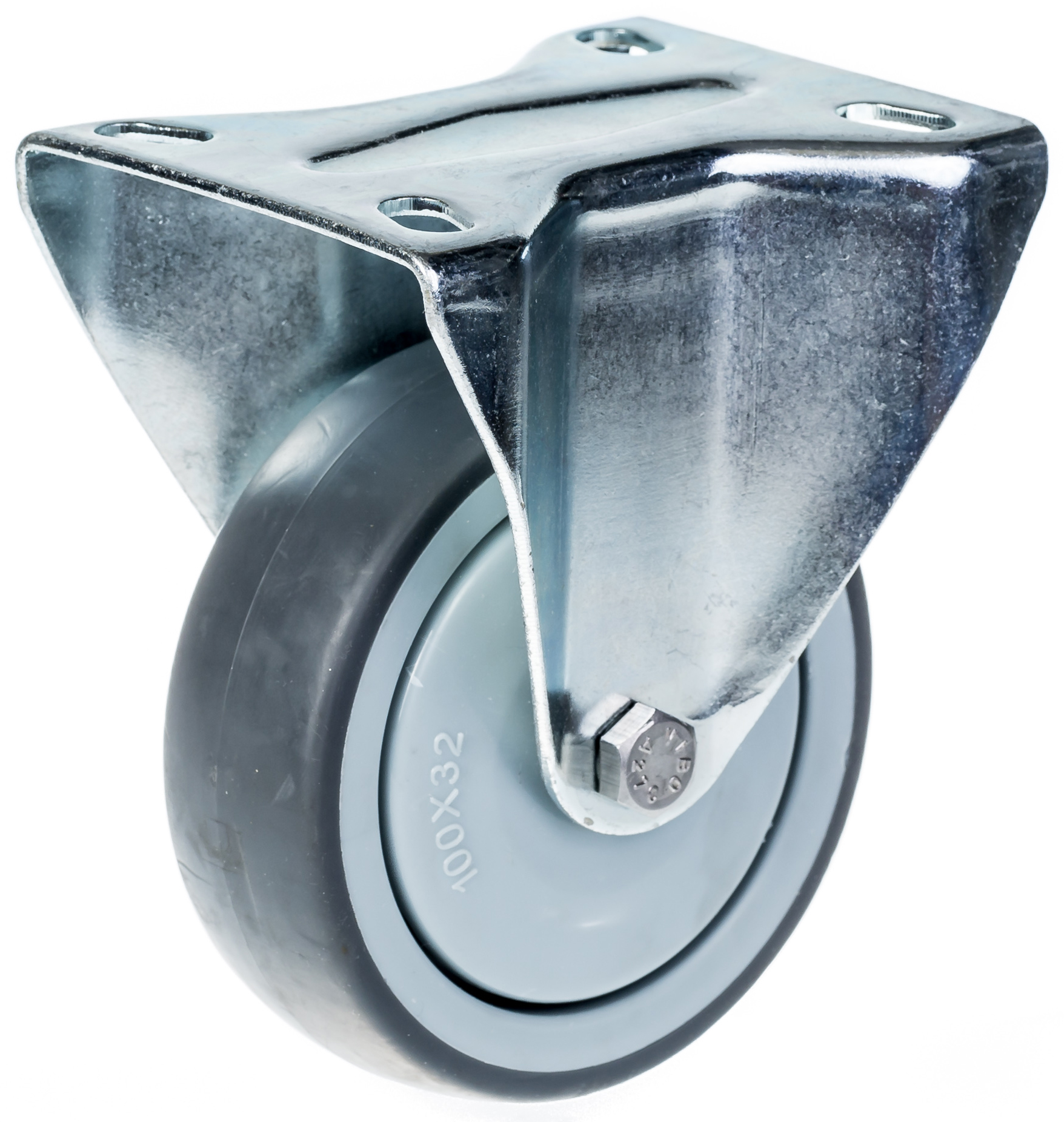 100mm fixed castor with grey thermoplastic rubber on polypropylene centre wheel