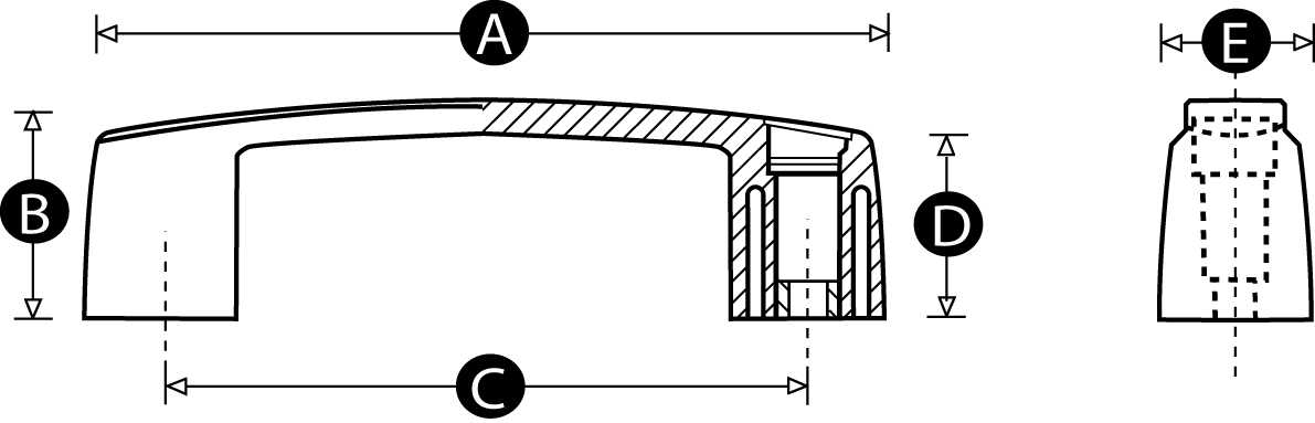 Nylon bridge handle - 132mm hole centres - Plain bore for fixing with M8 bolts