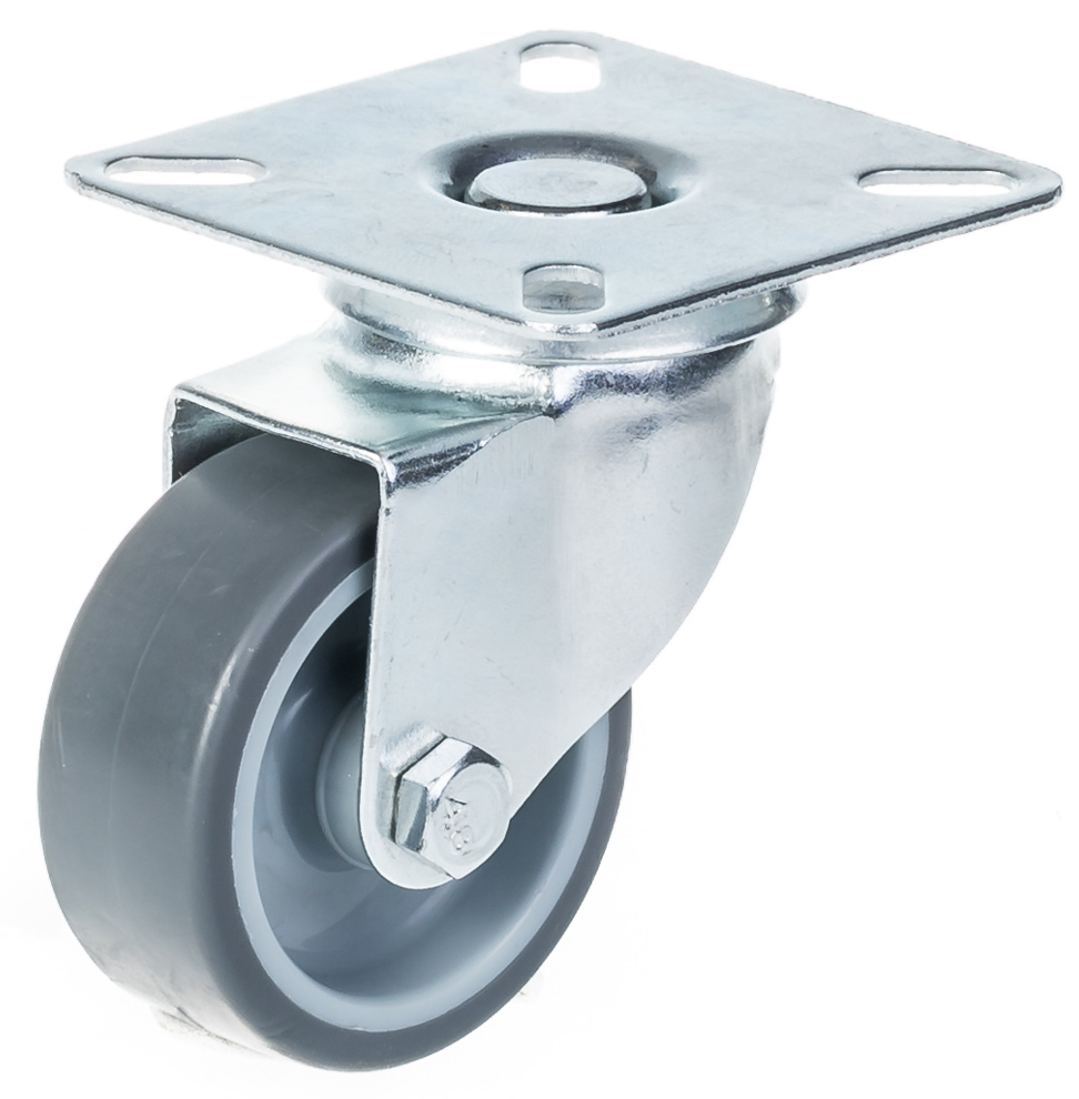 50mm swivel castor with grey thermoplastic rubber on polypropylene centre wheel