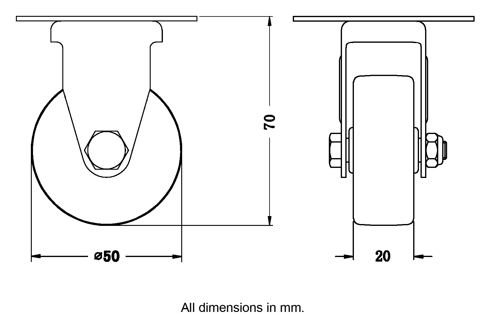 Wheel Diameter: 50mm (2" inches)