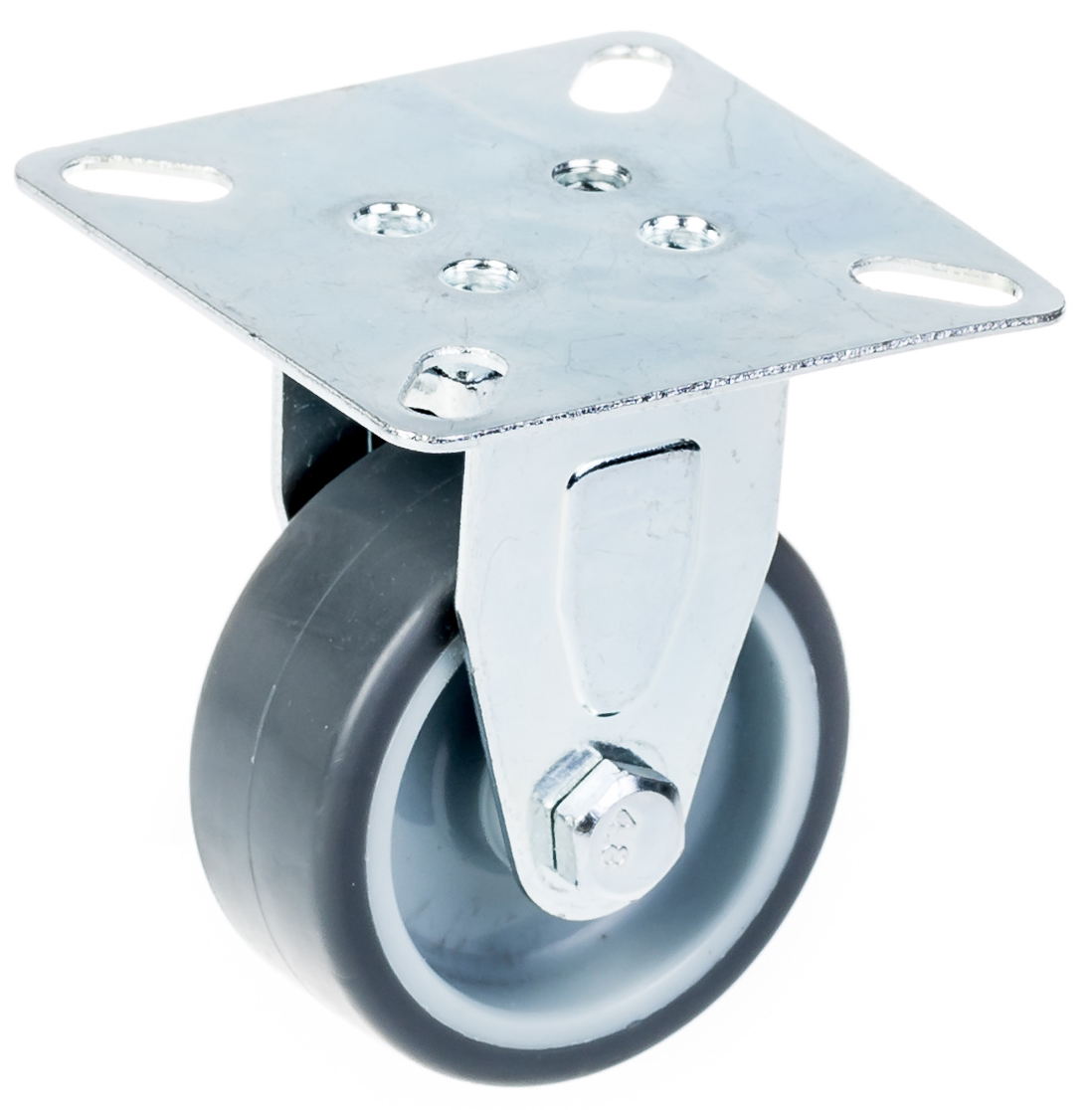 - Fixed castor with top plate bracket made of zinc plated steel.