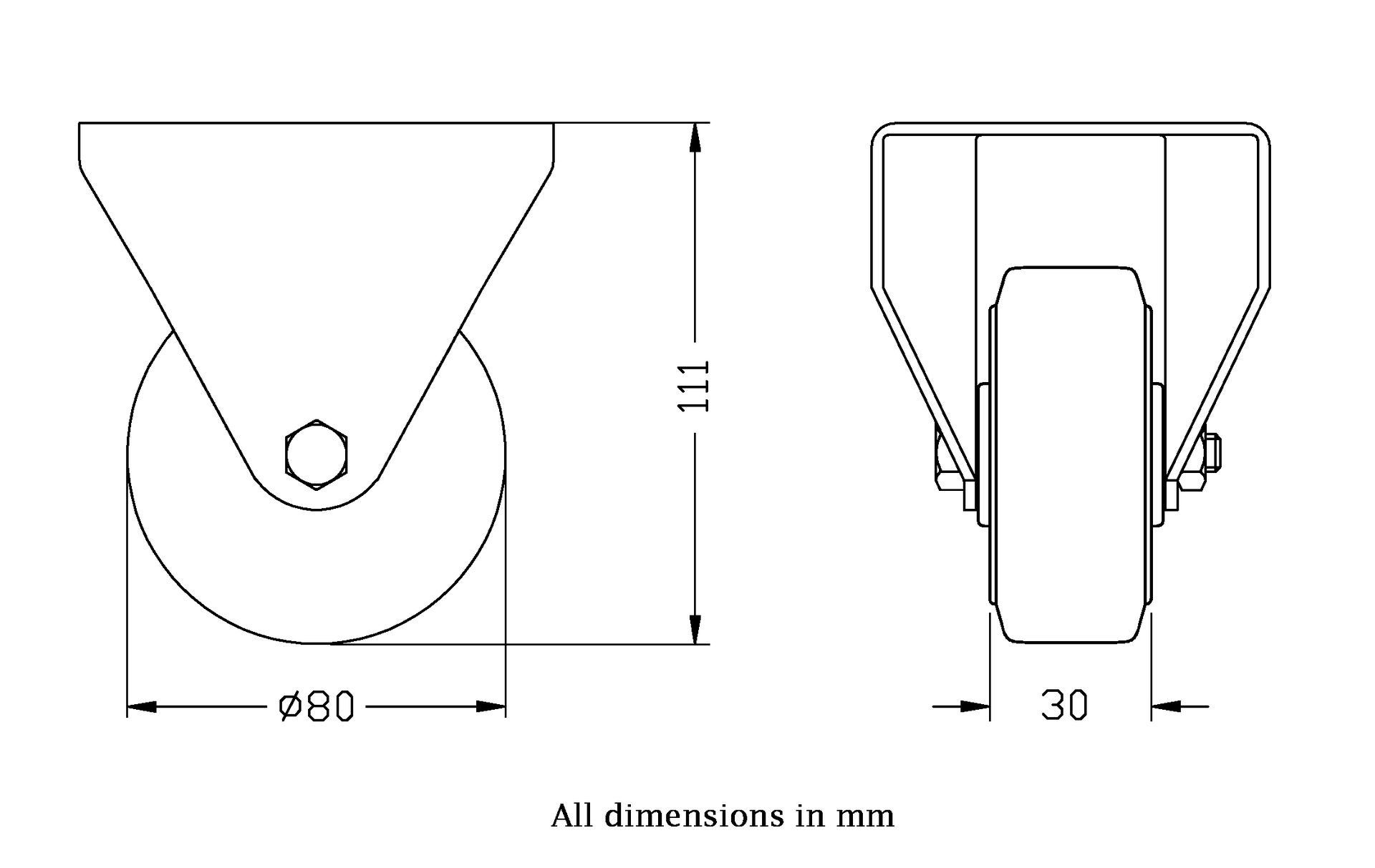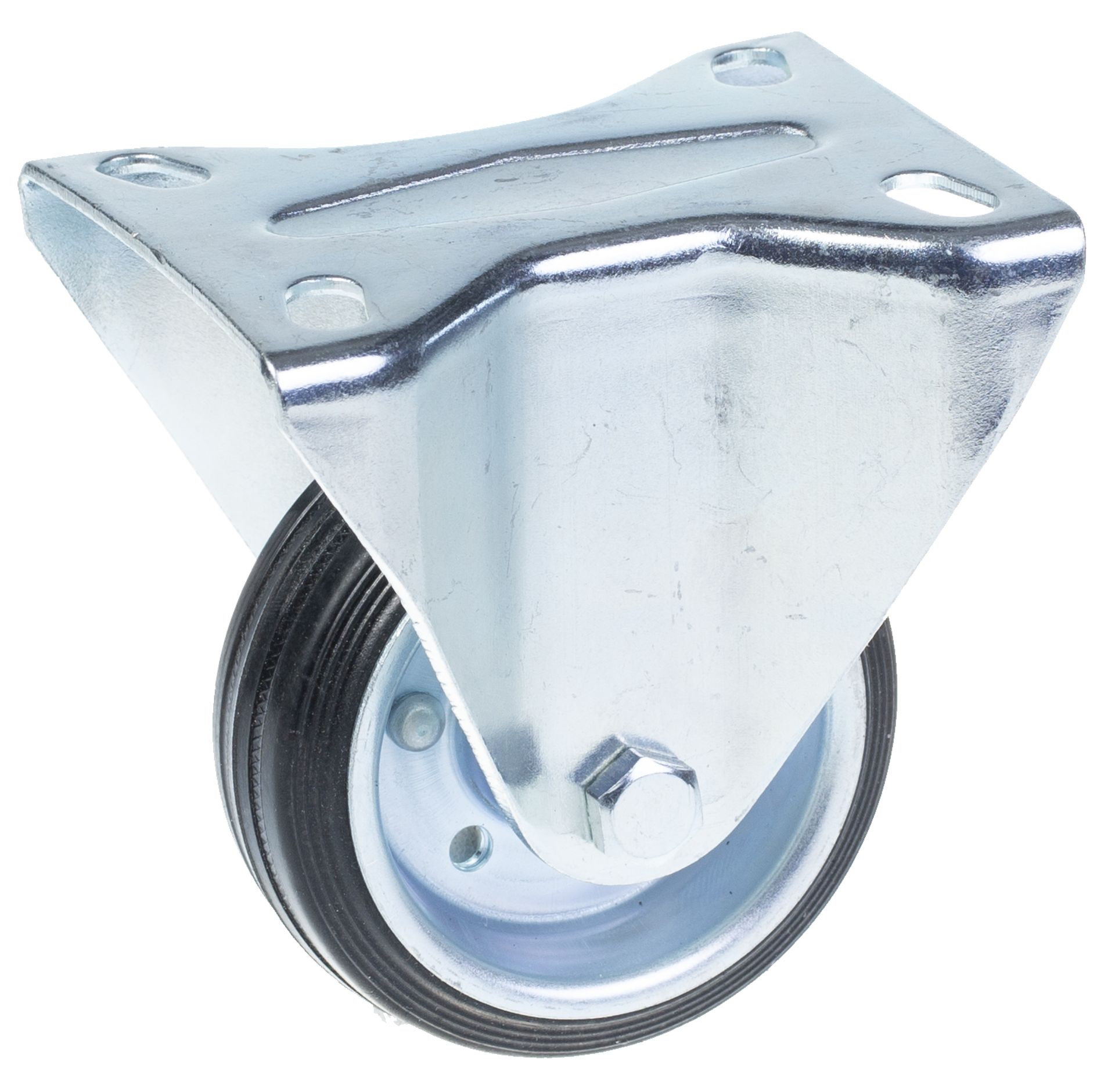 80mm fixed castor with black rubber on pressed steel centre wheel
