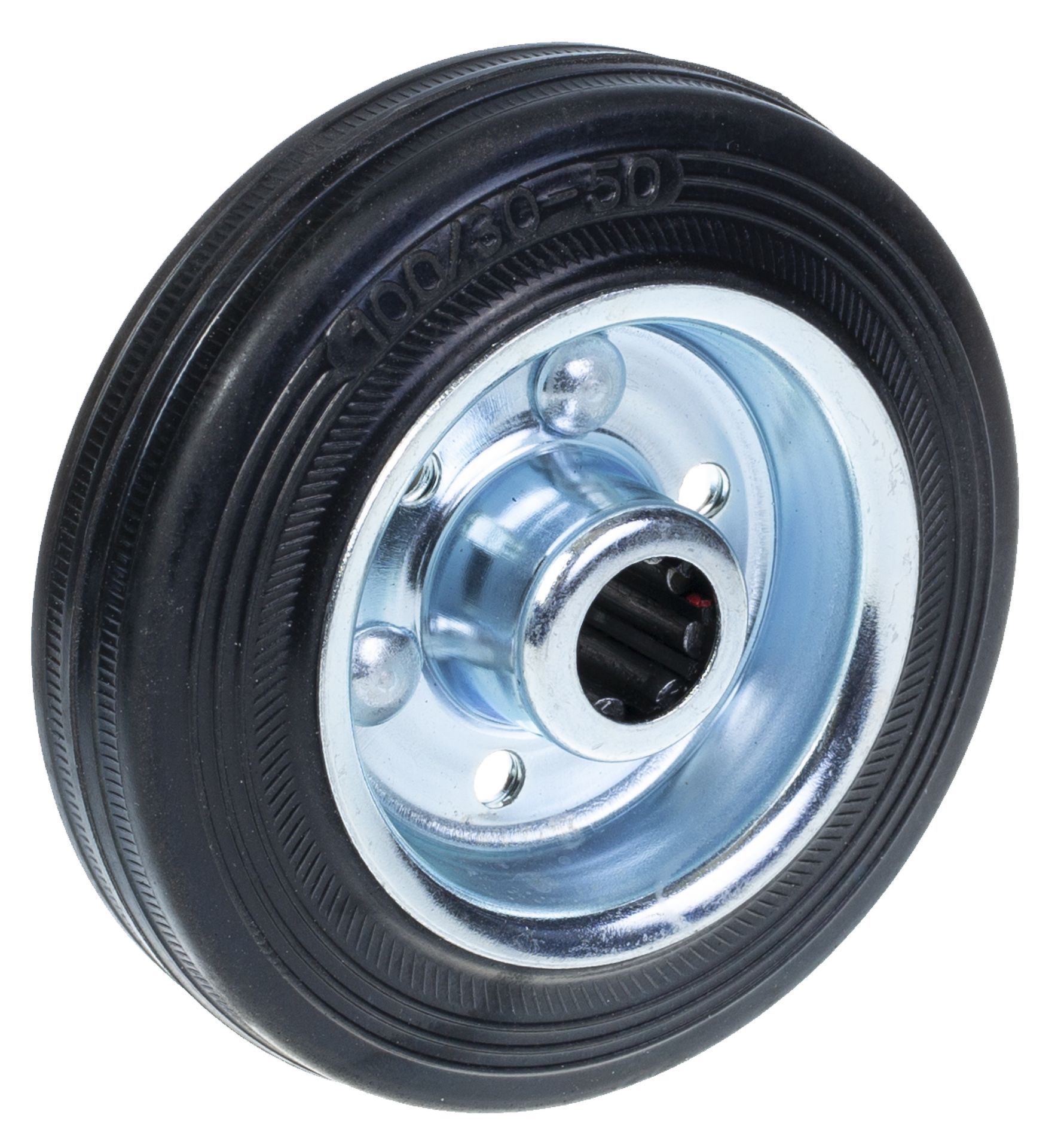 100mm wheel with black rubber on pressed steel centre
