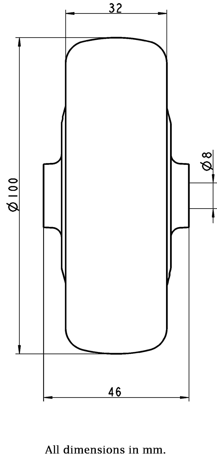 - A wheel with dark grey electrically conductive thermoplastic polyurethane tread on nylon centre.