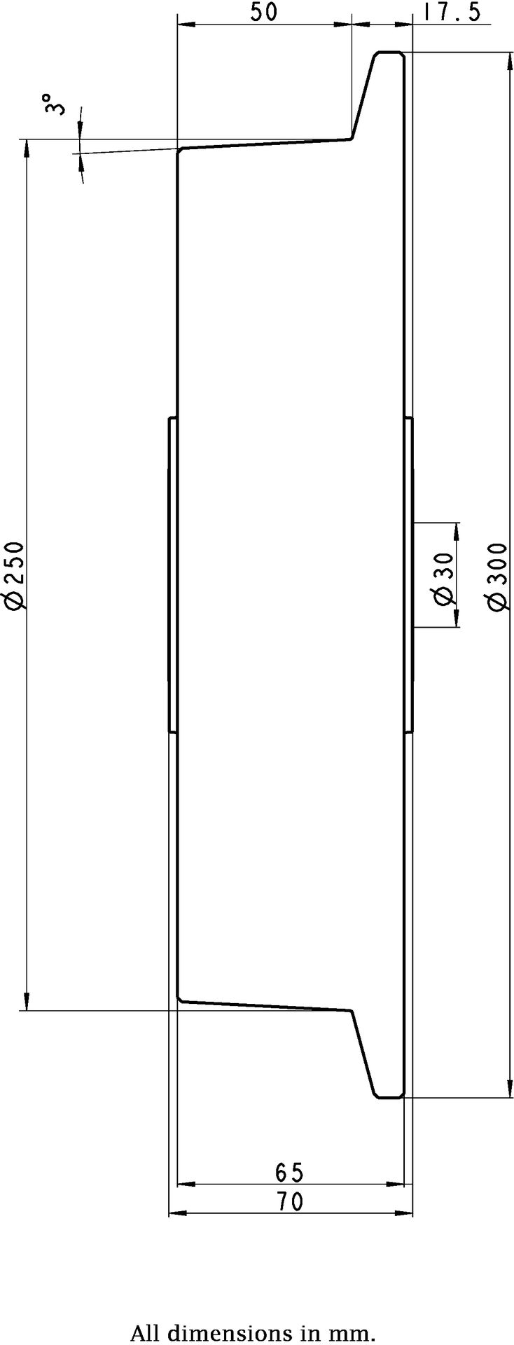 | Wheel Diameter Without Flange (mm) | 250 |