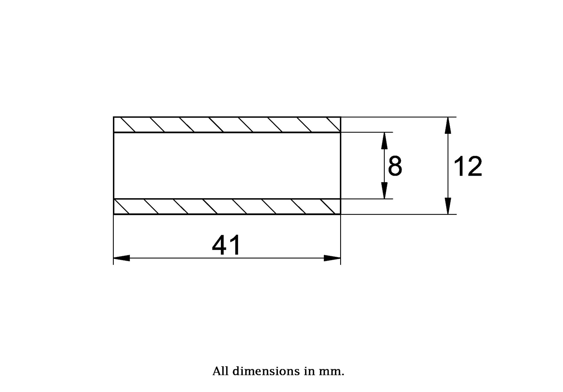 Bush Size: 12x08x41mm (Outside Diameter x Bore x Length)