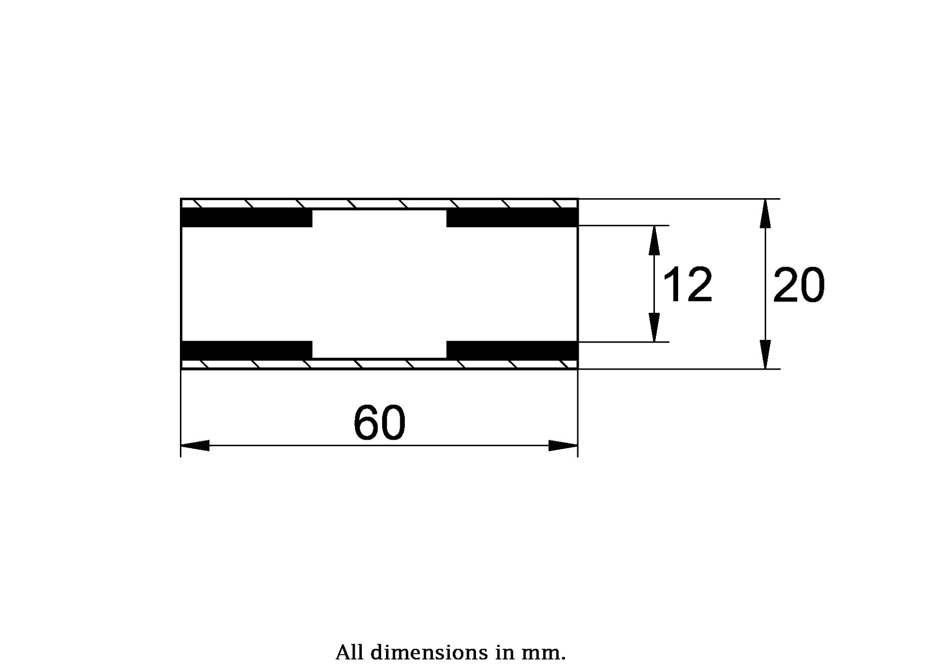 Bush Size: 20x12x60mm (Outside Diameter x Bore x Length)