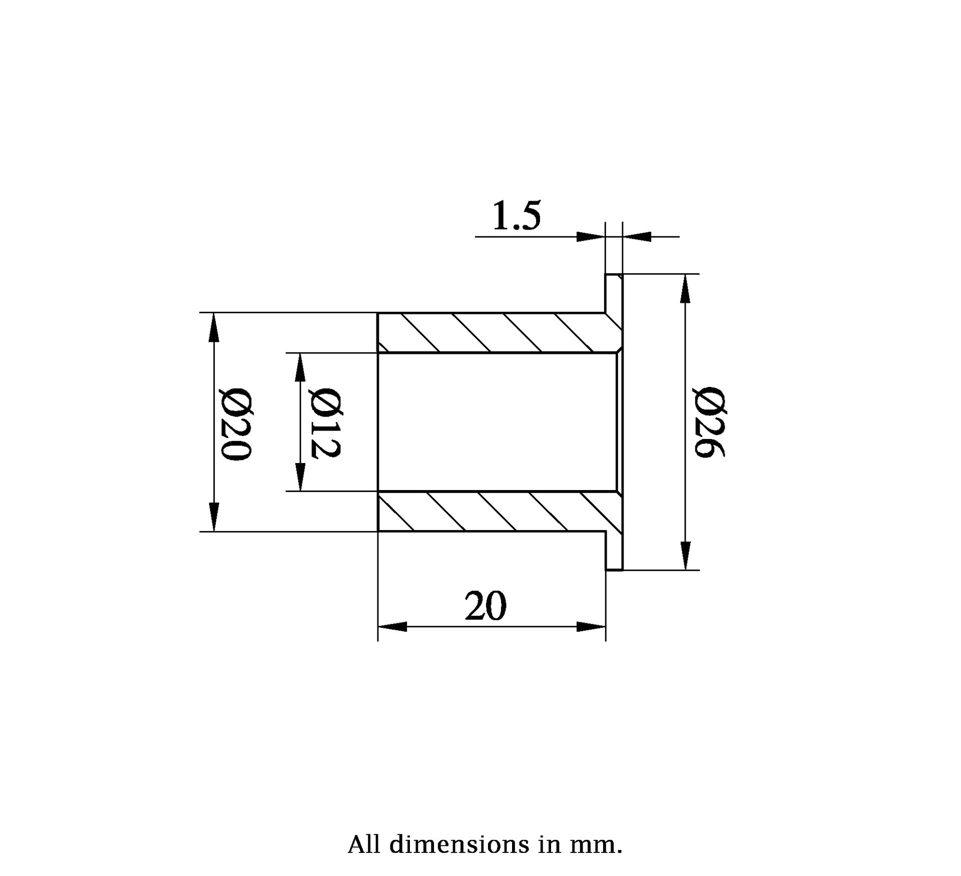 T-Bush Size: 20x12x01.5mm (Outside Diameter x Bore x Collar Thickness)
