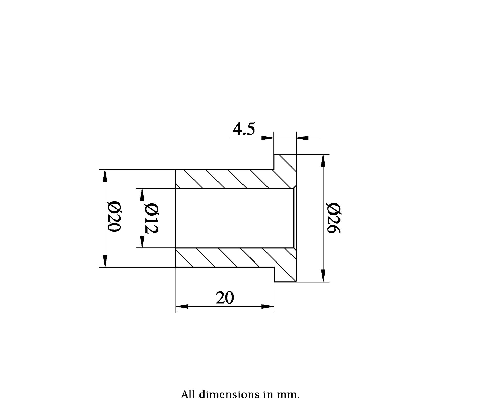 T-Bush Size: 20x12x04.5mm (Outside Diameter x Bore x Collar Thickness)