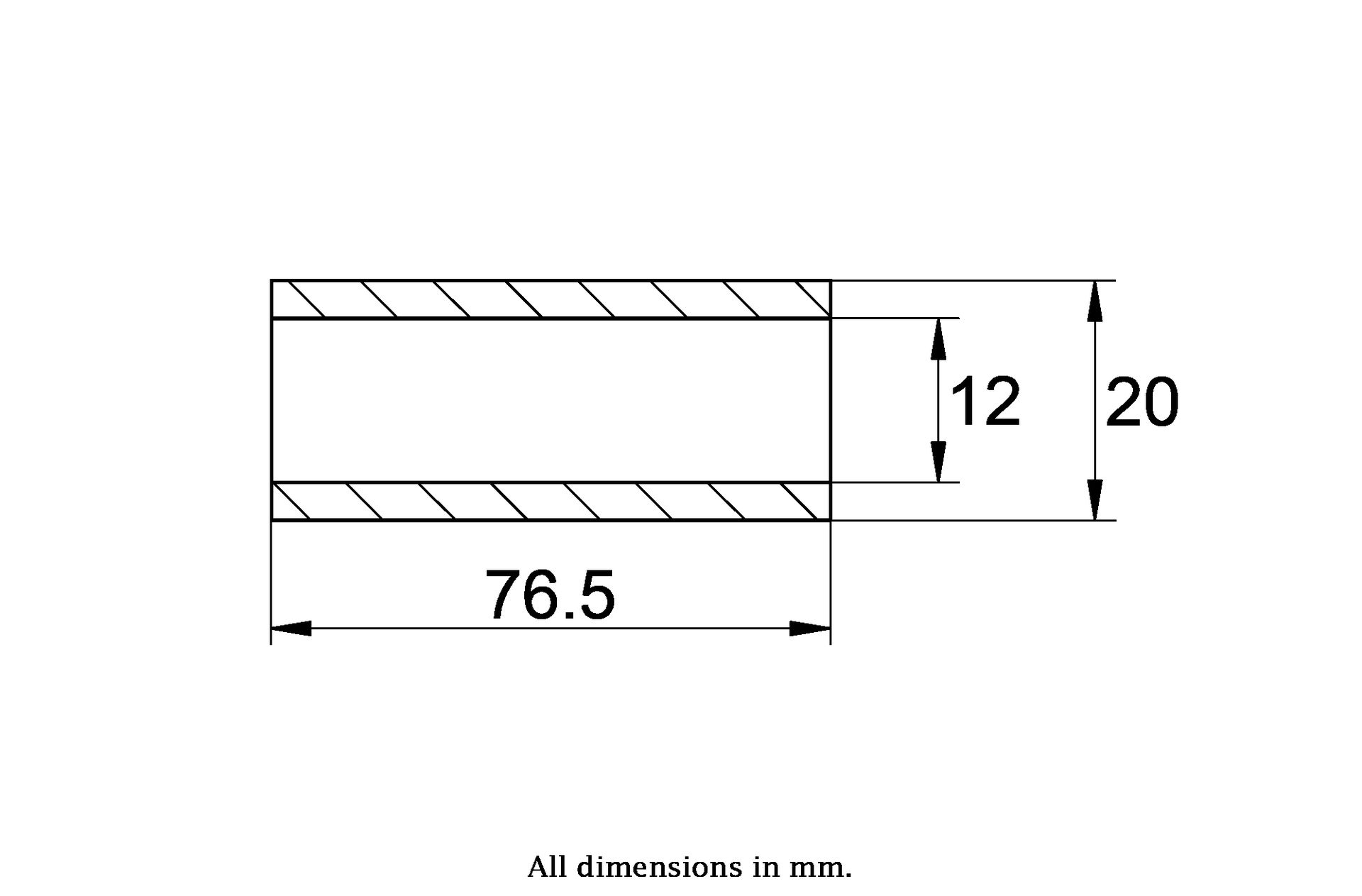 Bush Size: 20x12x76.5mm (Outside Diameter x Bore x Length)