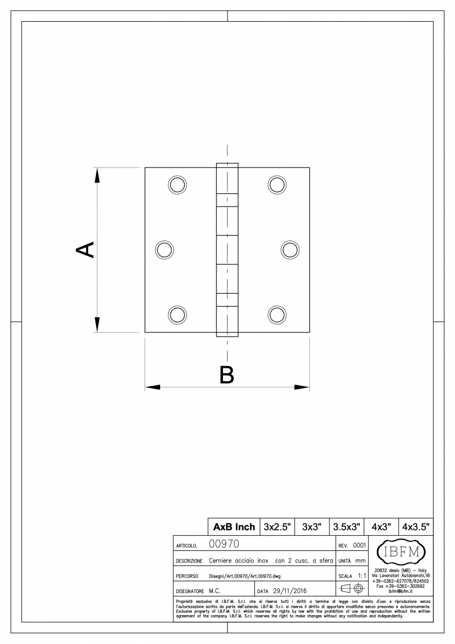 Hinge with 2 Ball Bearings Satin finish stainless steel Screw-on butt hinge Supplied with stainless fixing screws