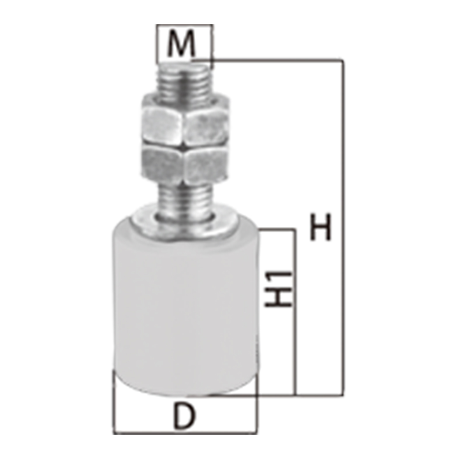 Moulded nylon gate guide. Zinc plated thread with two nuts.