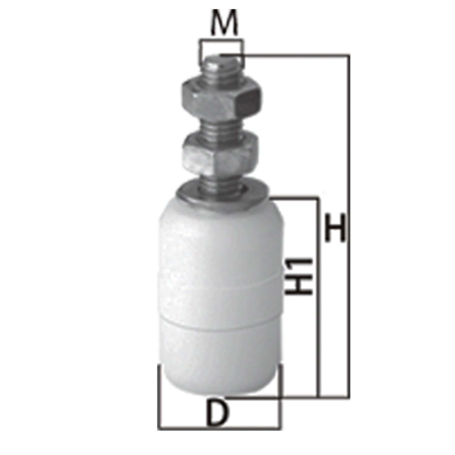 Moulded nylon gate guide. Zinc plated thread with two nuts.