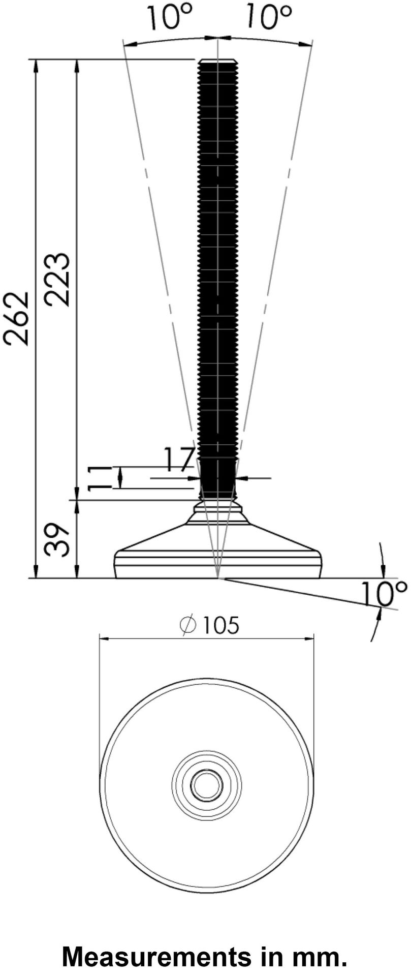- Fully threaded levelling foot made of stainless steel (material no. 1.4301, AISI304/A2).