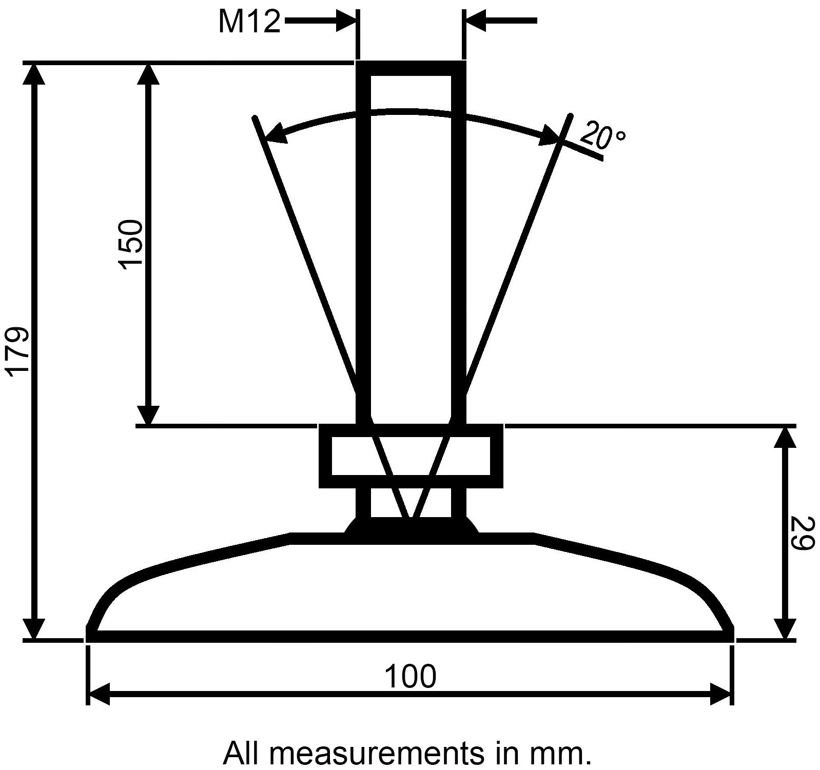 - The stem tilt up to 20° from perpendicular. Enables adjustment for items with angled legs.