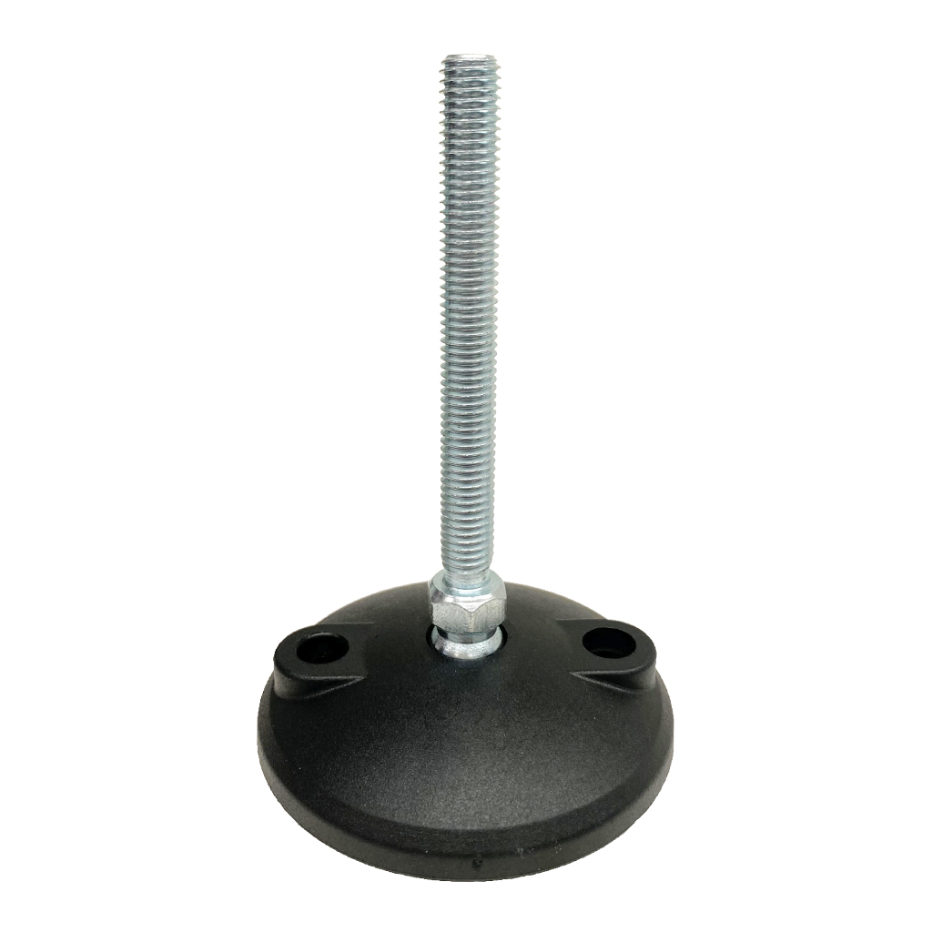 M10x90 Zinc plated tilting levelling foot 80mm plastic base with fixing holes