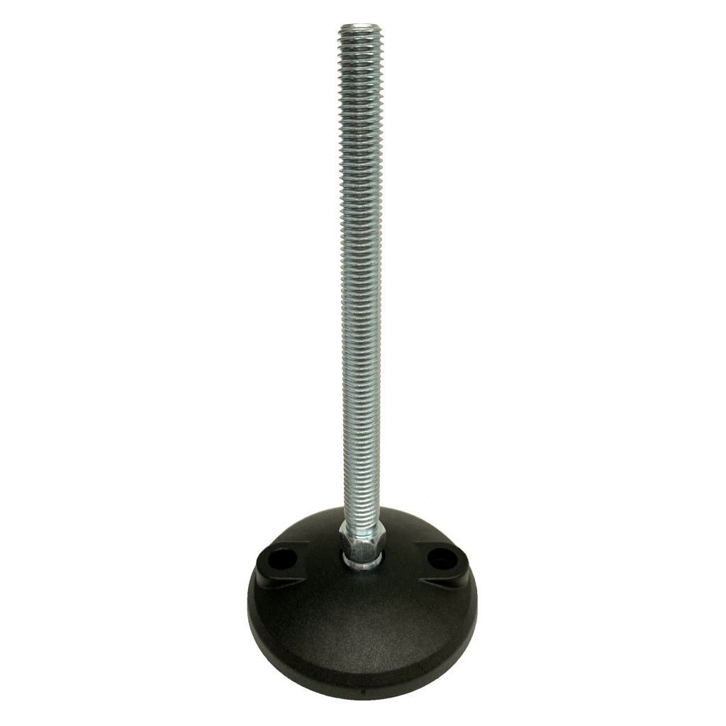 M12x150 Zinc plated tilting levelling foot 80mm plastic base with fixing holes