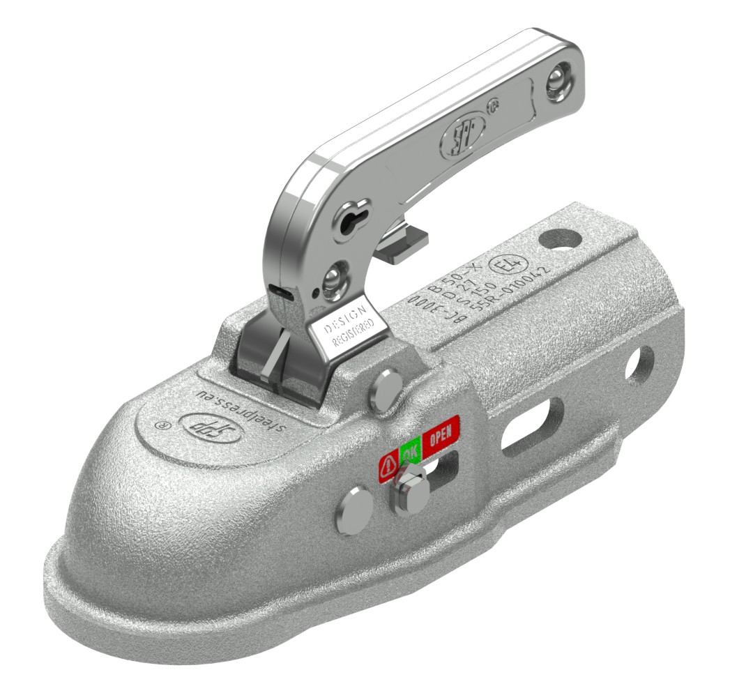SPP high quality trailer coupling head Cast iron body and pressed steel handle Double movement opening. To fit over 35/40/45mm round with adaptors 3000Kg. Capacity