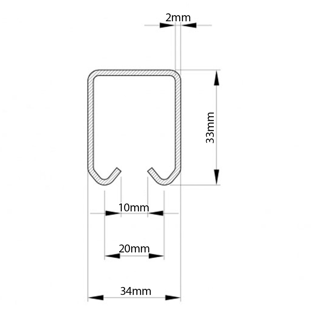 Overhead track 34x33mm (Sold in 3 metre lengths)