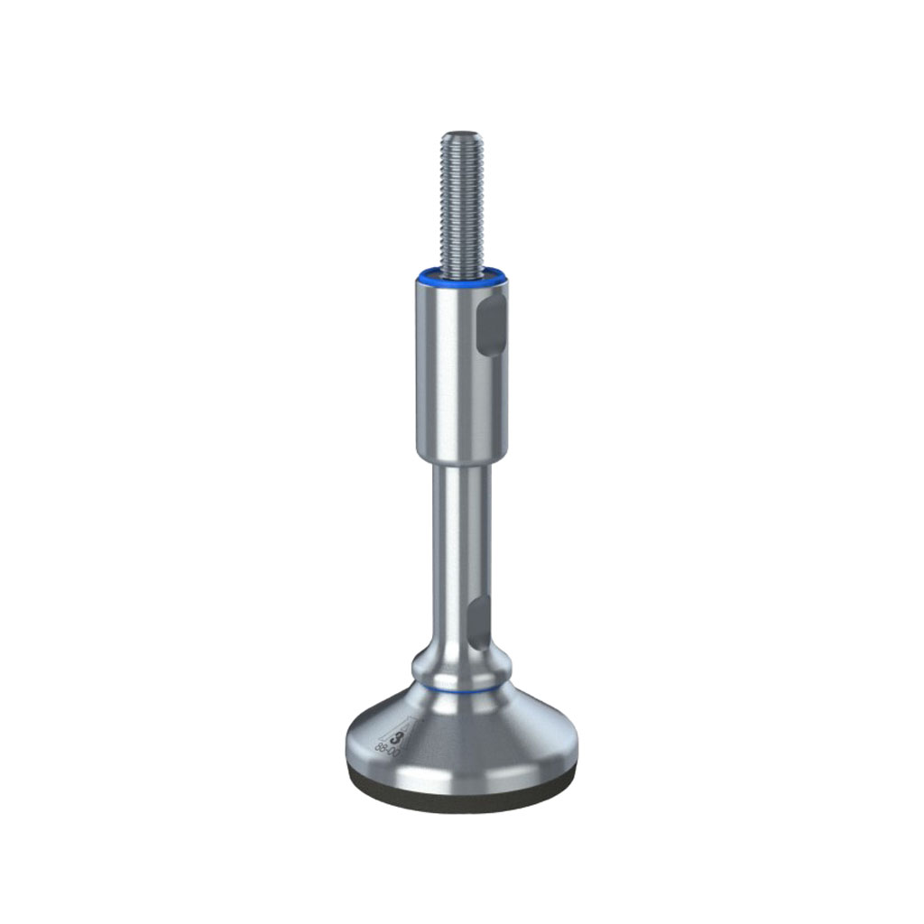 M12x150 Stainless steel certified hygienic levelling foot 65mm stainless base with anti-vibration rubber pad